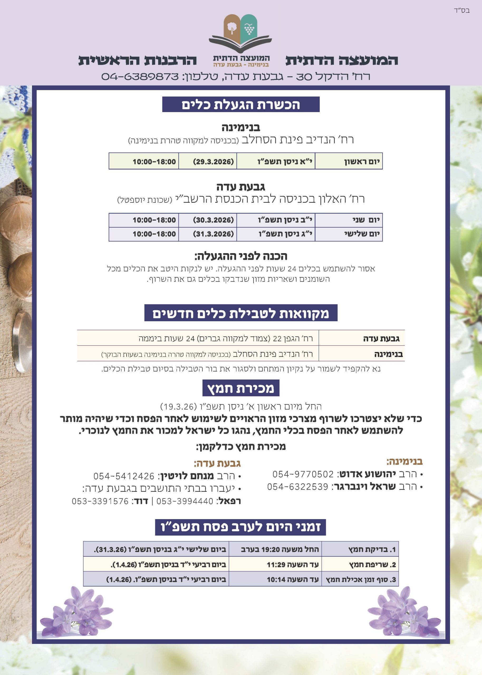 מידע כללי משרדי המועצה הדתית בנימינה – גבעת עדה: